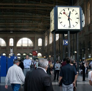 スイス鉄道の時計だと気がついた。